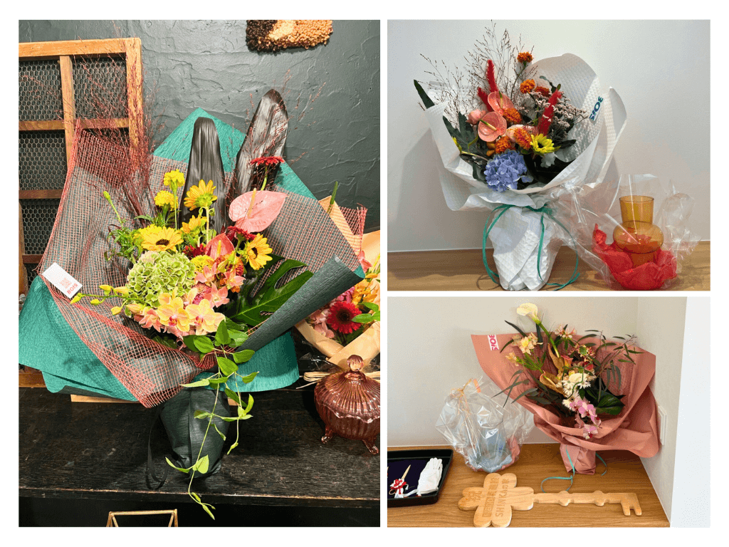 私ならではのこだわりですが、お引渡しのセレモニーの際に、テープカットやくす玉の演出、お客さまをイメージした花束と花瓶のプレゼント、フォトブックの贈呈などを行っています。お客様にとっても関わらせていただいた私達にとっても大切な節目ですし、お引き渡し後は、お客さまとお会いできる機会もお打ち合わせ時と比較すると減ってきてはしまうので、お客さまに思い出していただけるように、と思って特別な時間になるよう工夫しています。