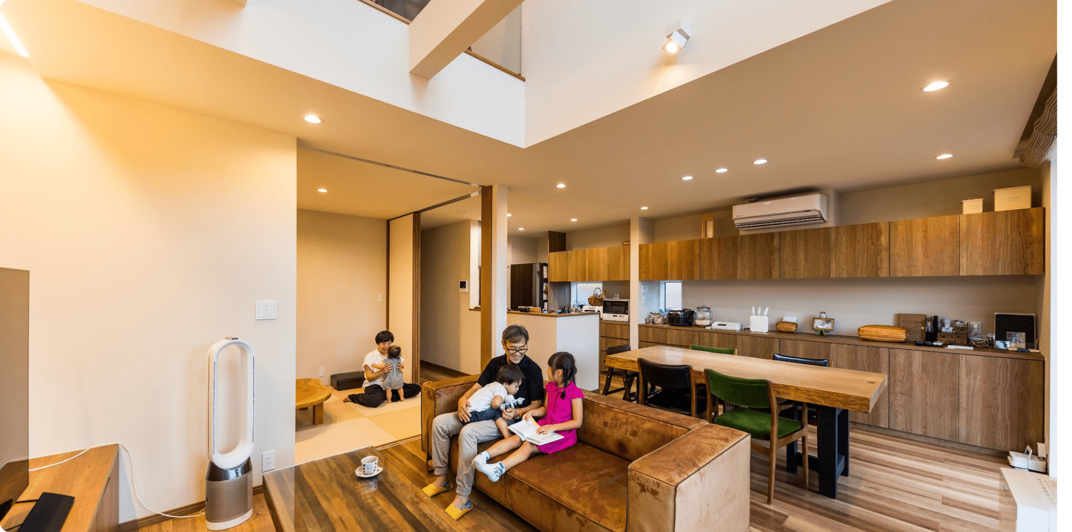 「家族がくつろぐリビングも、お昼寝に使う和室もすぐ目の前。2階に子ども達がいても、吹き抜けから聞こえる音で様子が分かるので安心感があり、家事も進みます」(奥さま)さらに驚いたのは、“想像以上の提案”が返ってきたこと。